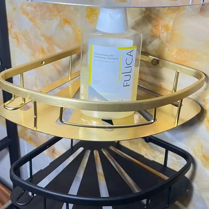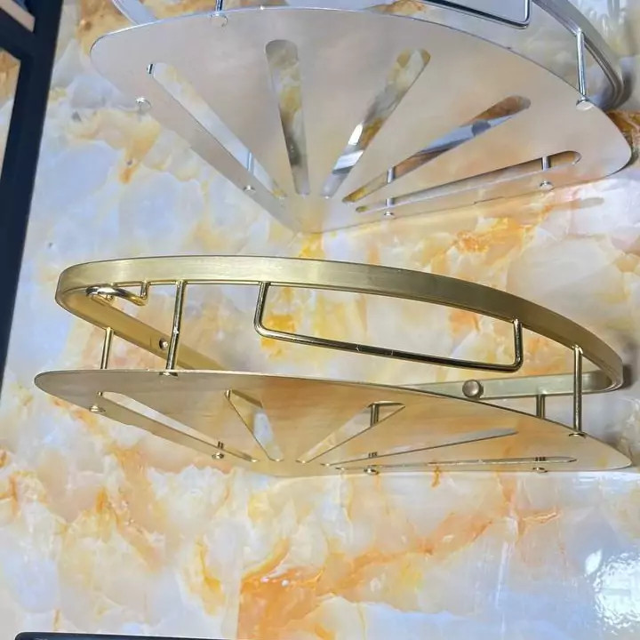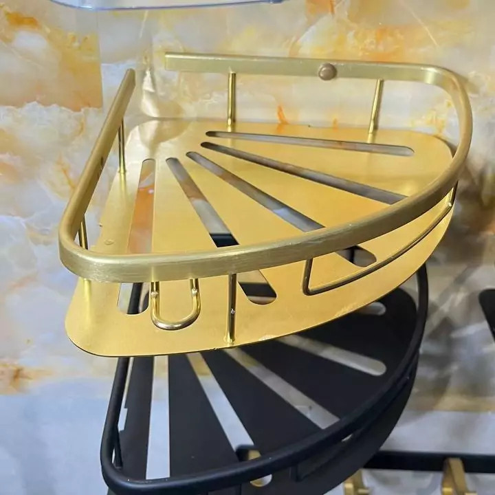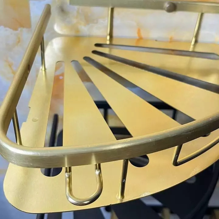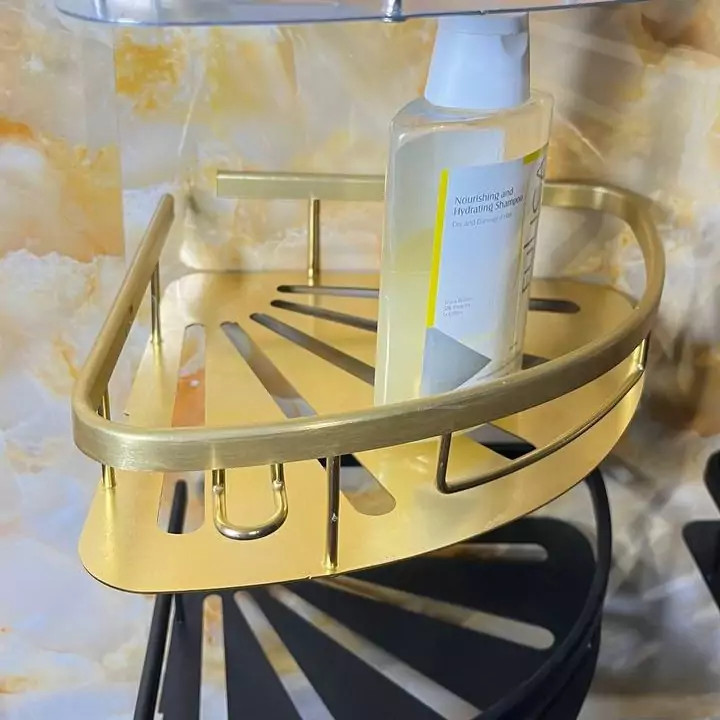 قفسه حمام طلایی یک طبقه آلومینیمی مدل کنج صفحه ای کو TBCO شلف استند 1 طبقه سرویس بهداشتی جا شامپو و صابون
