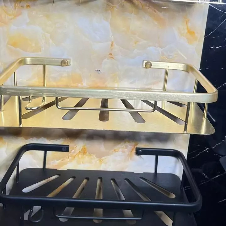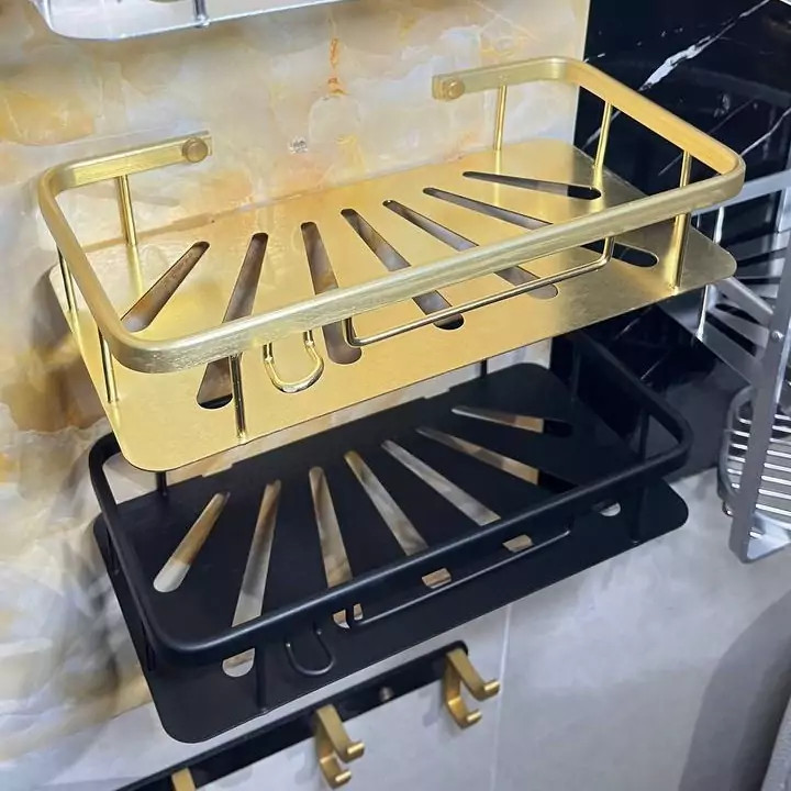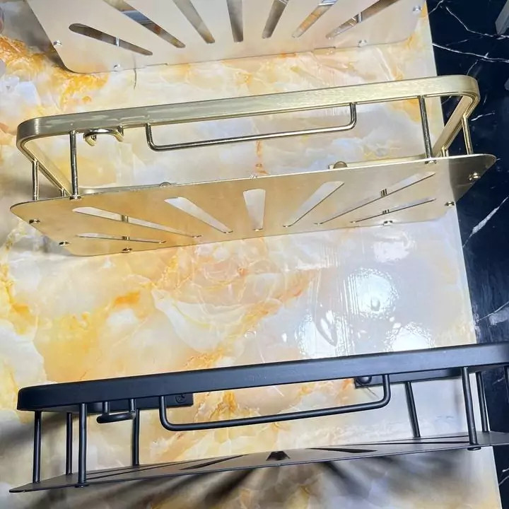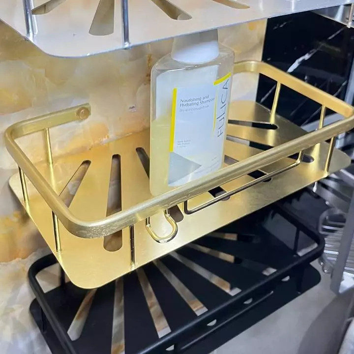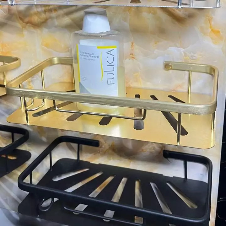 قفسه حمام طلایی یک طبقه آلومینیمی مدل وسط صفحه ای کو TBCO شلف استند 1 طبقه سرویس بهداشتی جا شامپو و صابون