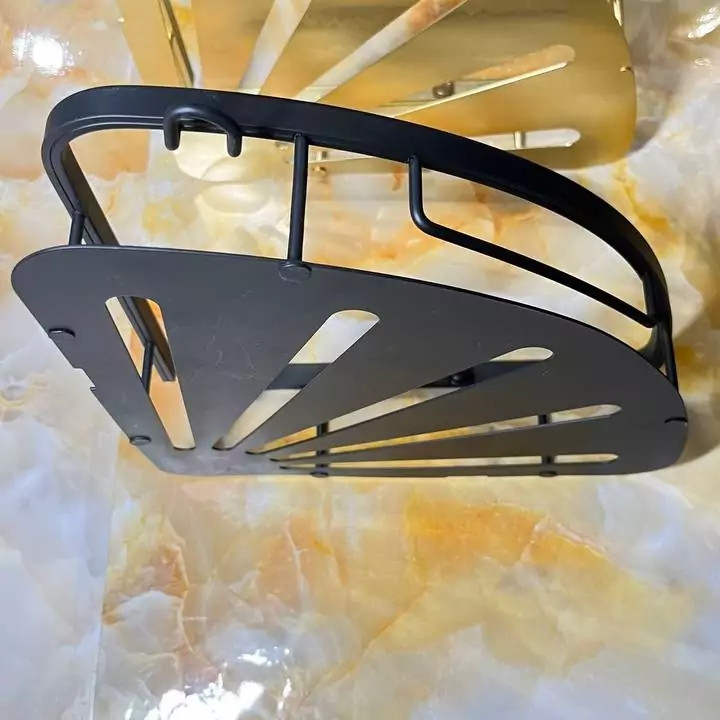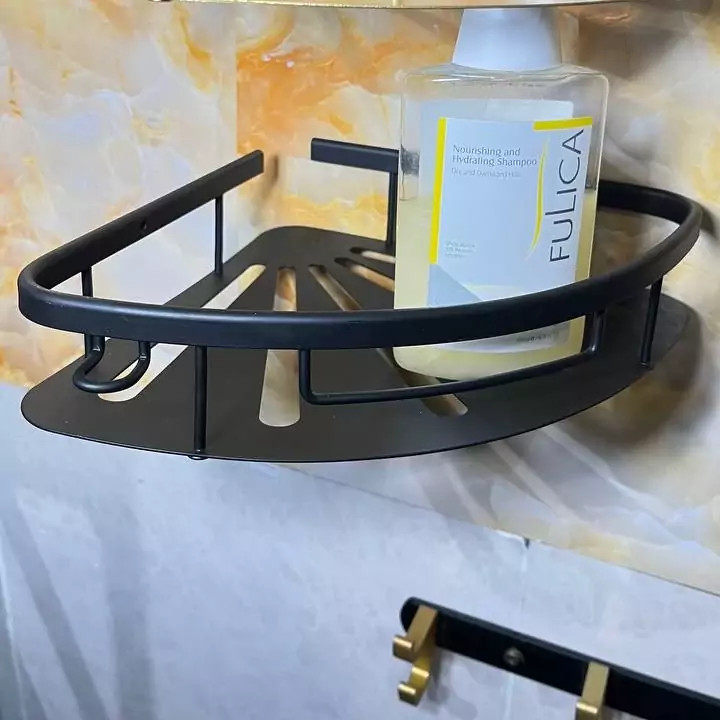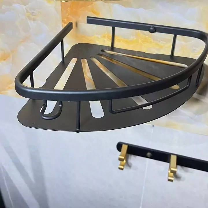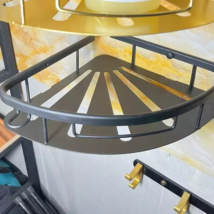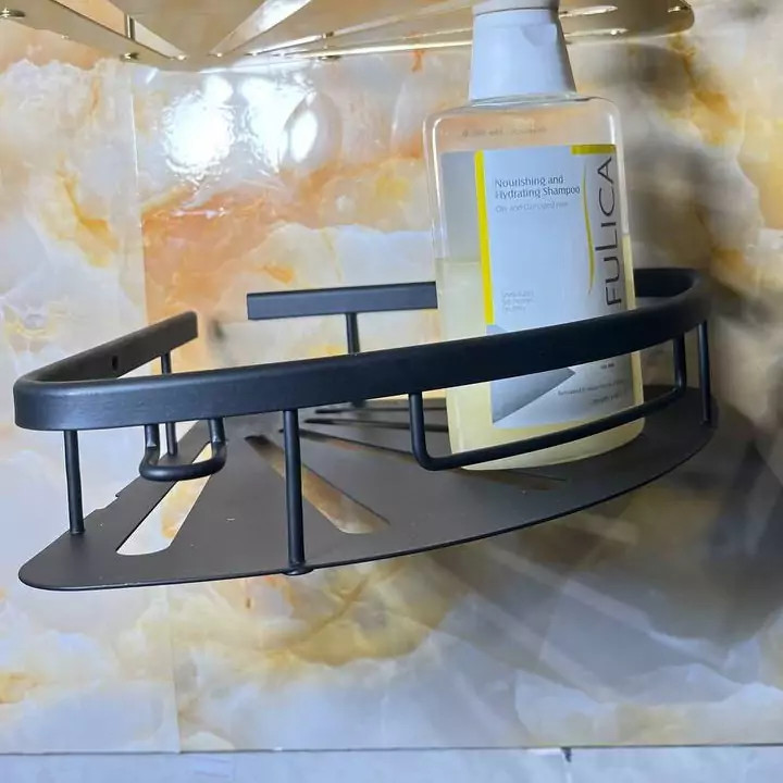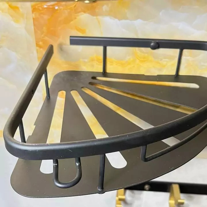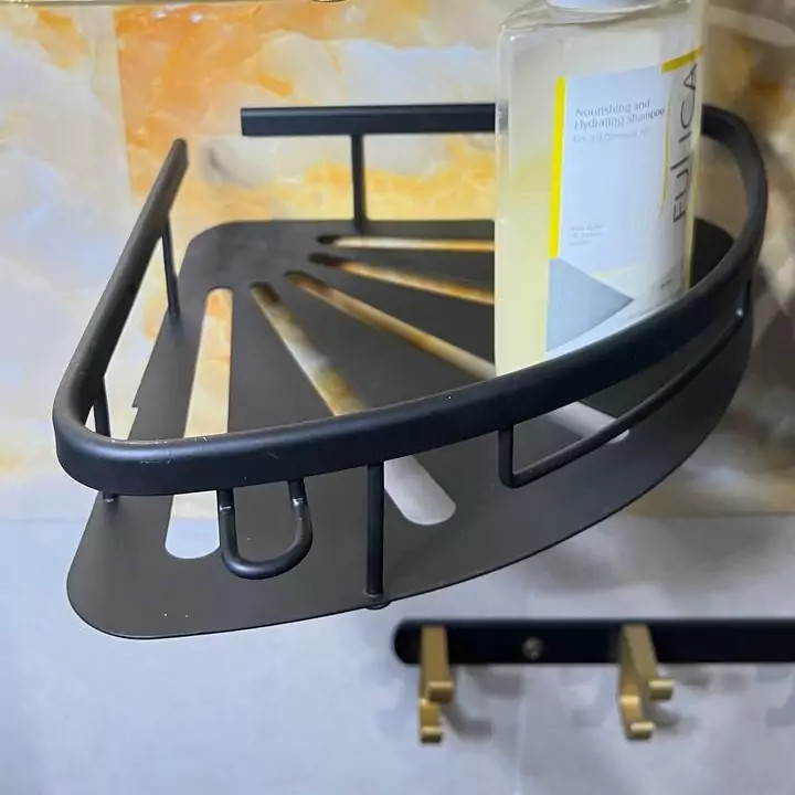 قفسه حمام مشکی یک طبقه آلومینیمی مدل کنج صفحه ای کو TBCO شلف استند 1 طبقه سرویس بهداشتی جا شامپو و صابون