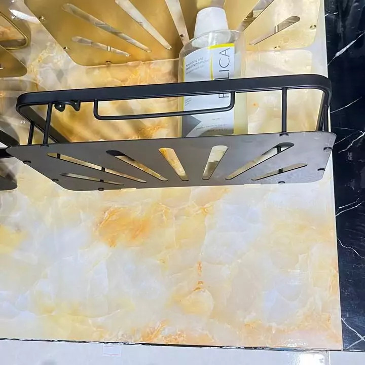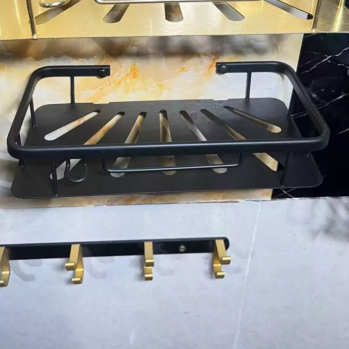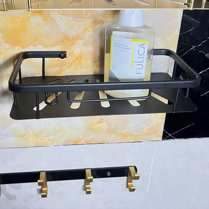 قفسه حمام مشکی یک طبقه آلومینیمی مدل وسط صفحه ای کو TBCO شلف استند 1 طبقه سرویس بهداشتی جا شامپو و صابون