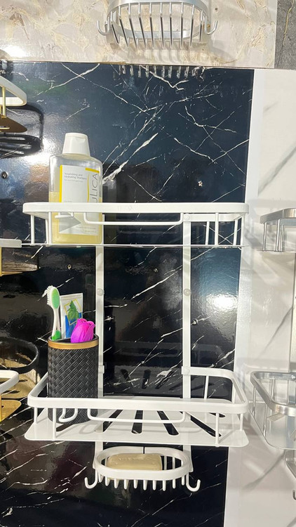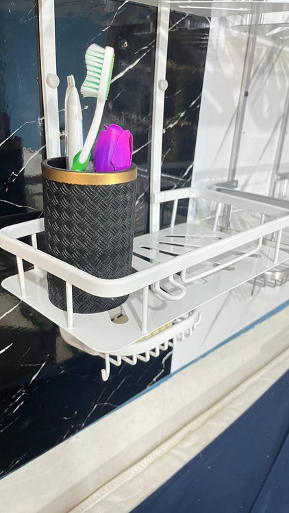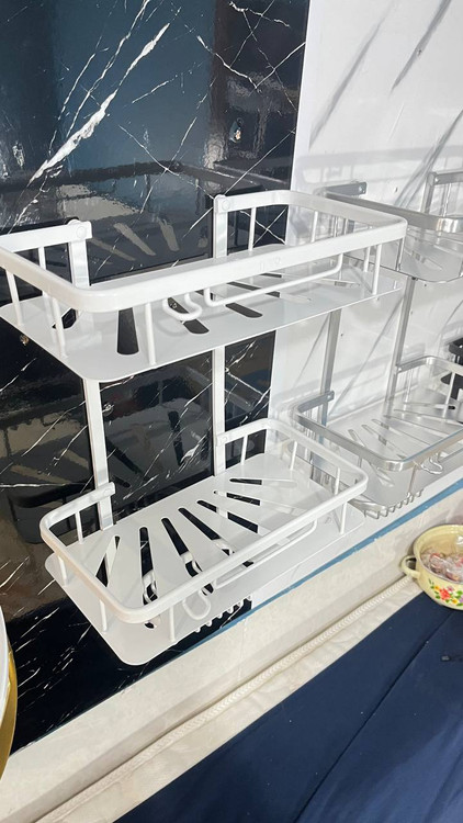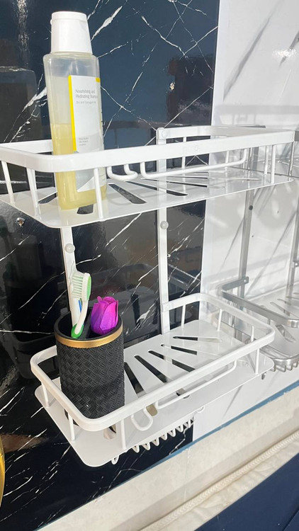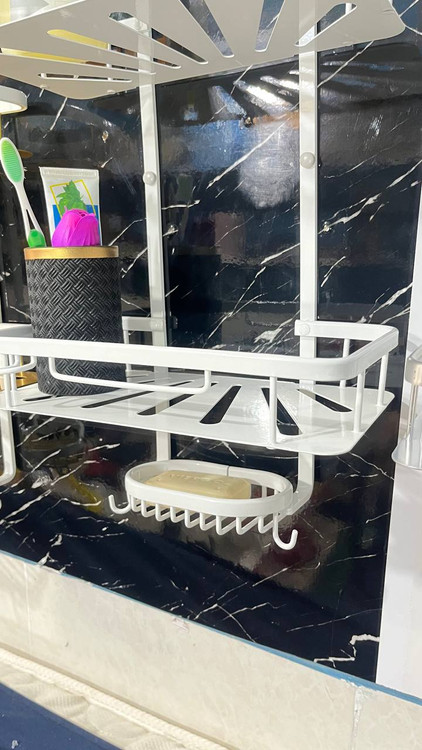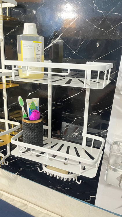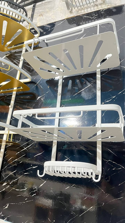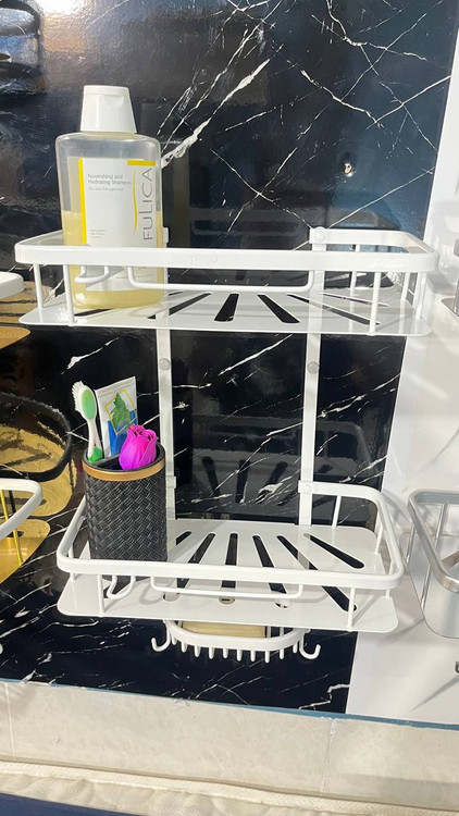قفسه حمام سفید دو طبقه آلومینیمی مدل وسط صفحه ای کو TBCO شلف استند سرویس بهداشتی دو جا شامپو و صابون