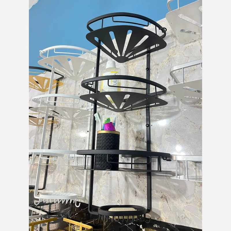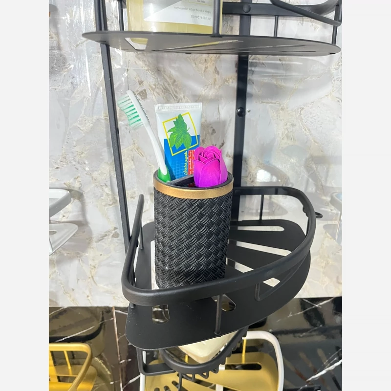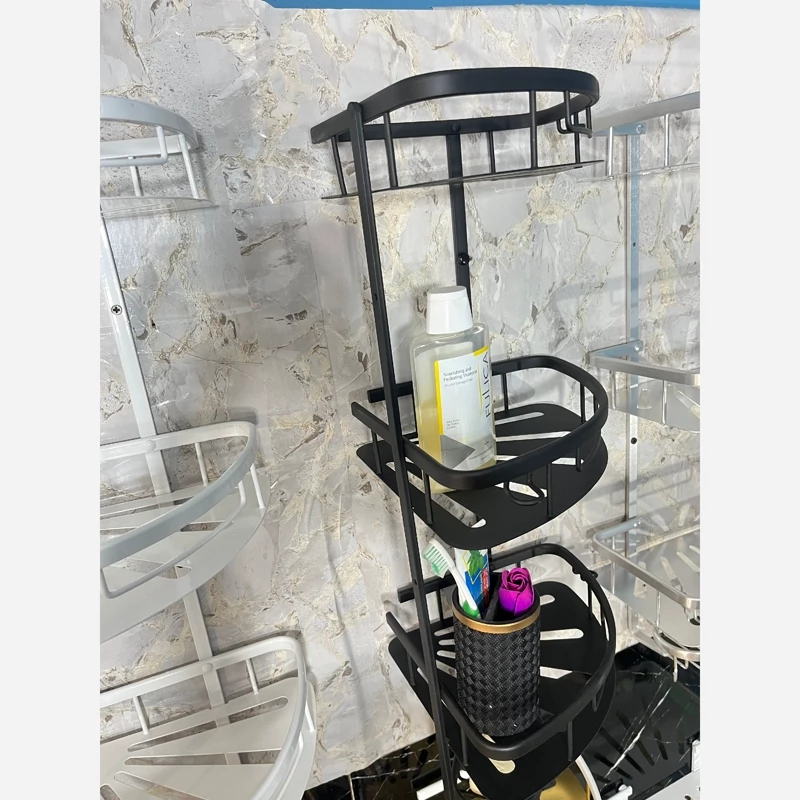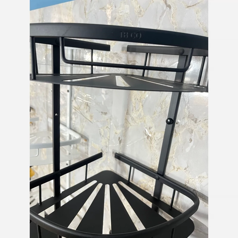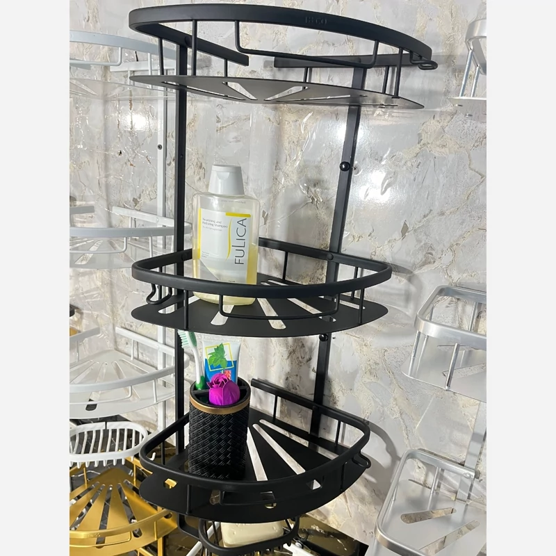 قفسه حمام مشکی 3 طبقه آلومینیمی مدل کنج صفحه ای کو TBCO شلف استند سرویس بهداشتی سه جا شامپو و صابون