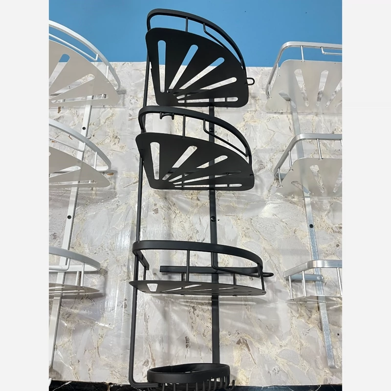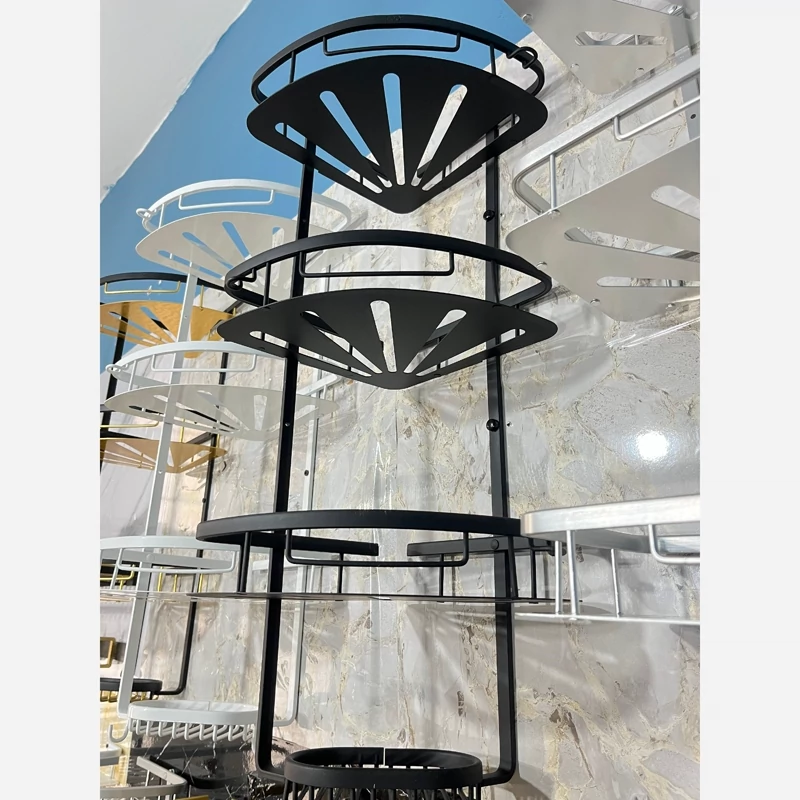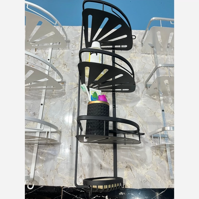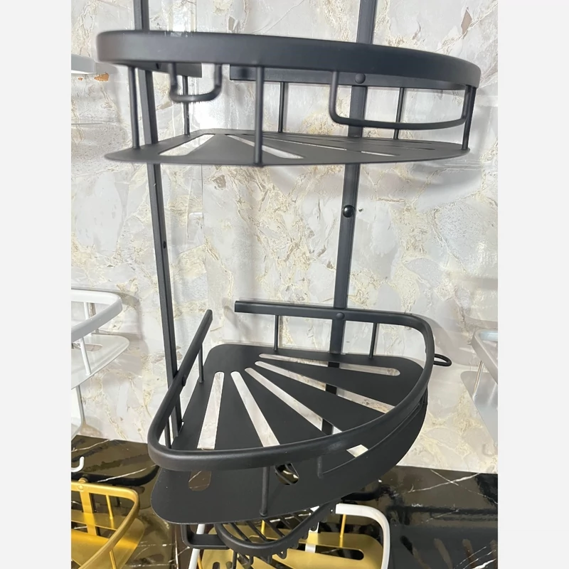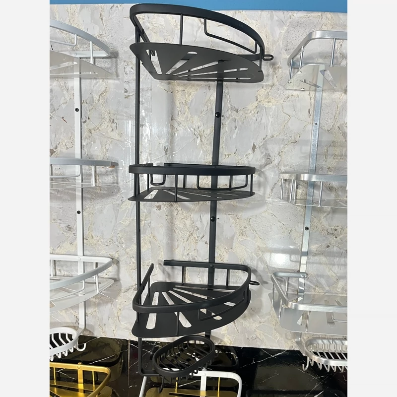قفسه حمام مشکی 3 طبقه آلومینیمی مدل کنج صفحه ای کو TBCO شلف استند سرویس بهداشتی سه جا شامپو و صابون