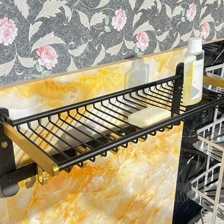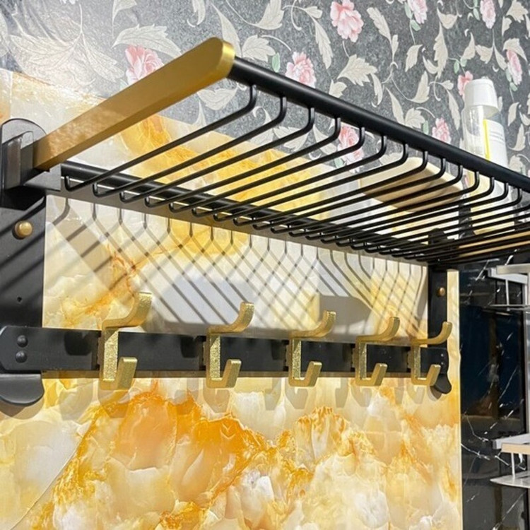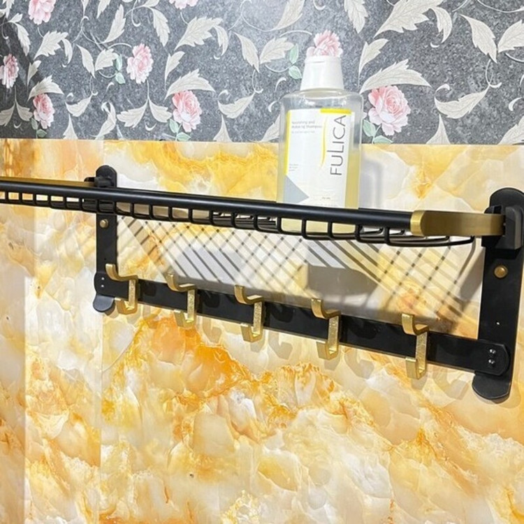 رخت آویز تاشو دیوار کوب مشکی طلایی آلومینیمی