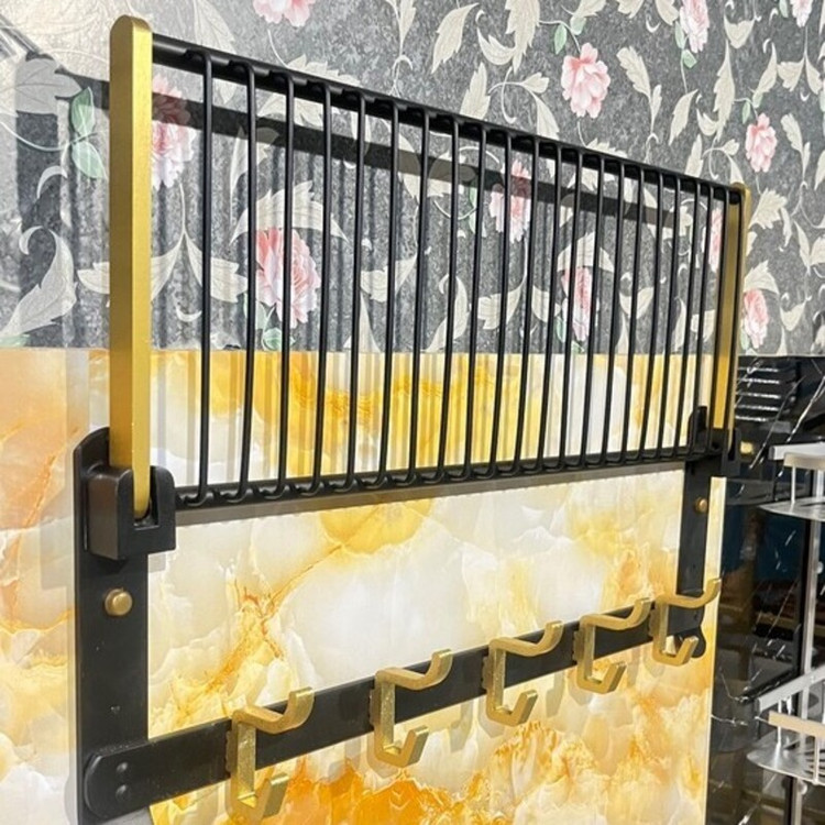 دیوار کوب تاشو پنج شاخه بند رخت آلومینیمی بند رخت مشکی طلایی
